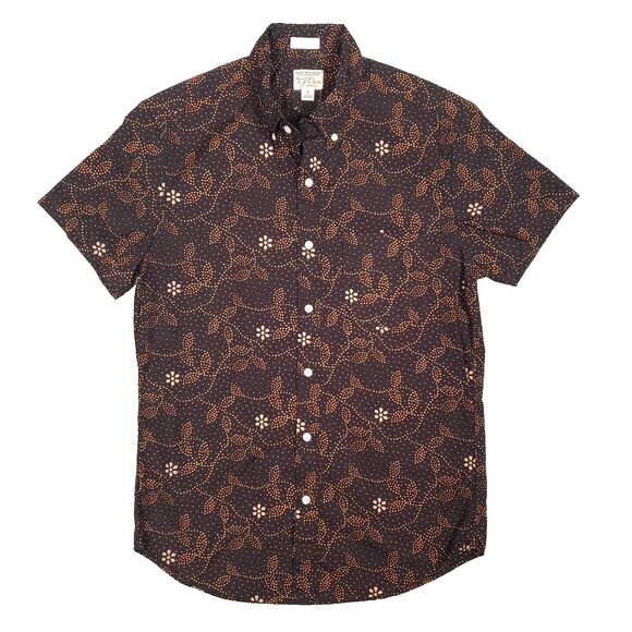 J.Crew Secret Wash Shirting Floral Shirt Mens Small Orange Black Organic Cotton