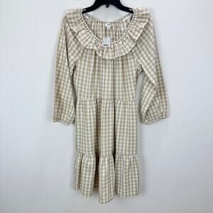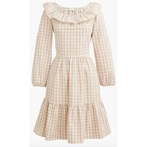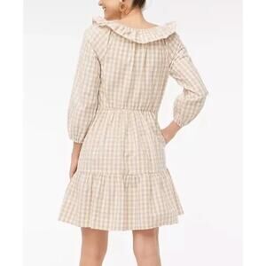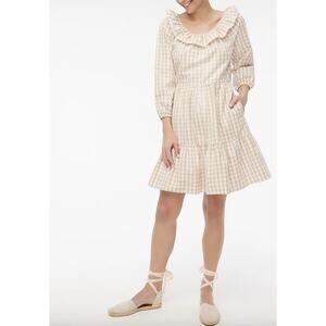 J.Crew Seersucker Ruffleneck Mini Dress Gingham Beige Cottagecore US 8 NWT.