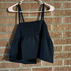 J.Crew Seersucker Tie-Front Black Crop Top Size XL