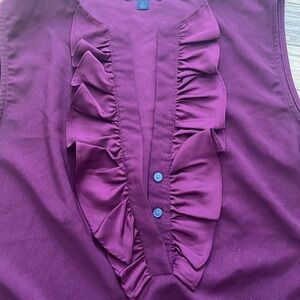 Burgundy with ruffle detail and three covered front buttons
