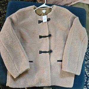 JCrew Sherpa Toggle Coat with tags. Tan with toggles. Never worn. Does run large.