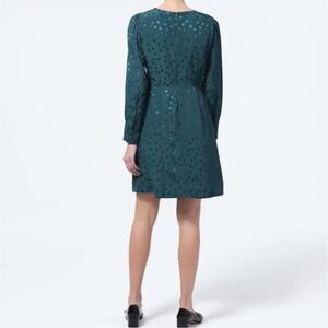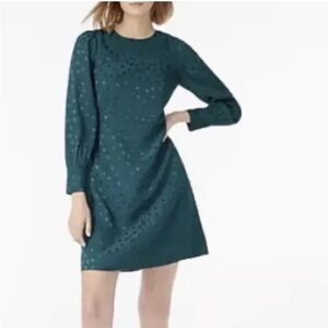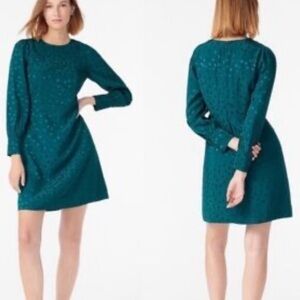 Make a statement with this stunning J.Crew shift dress in a rich green jacquard floral dot pattern. Tailored for a flattering silhouette, this dress features bishop sleeves with button cuffs and a hidden back zipper for a sleek, polished finish.