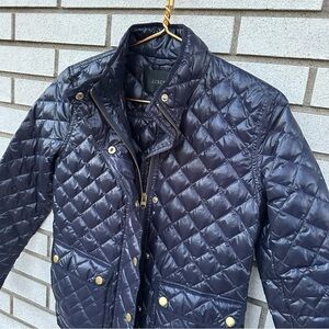 J.Crew Shiny Quilted Downtown Field Puffer Jacket Navy Blue Down Small Petite