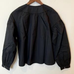 J.Crew Shirred Popover Top Cotton Poplin Long Sleeve Office Date CI522 Black XXS