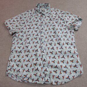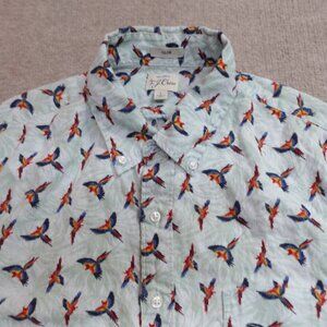 J.Crew Shirt Large Blue Slim 100% Linen All Over Parrots