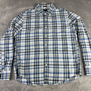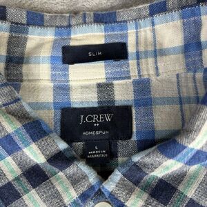 J.Crew Shirt Mens Large Slim Fit Homespun Cotton‎ Blue Paid Button Down