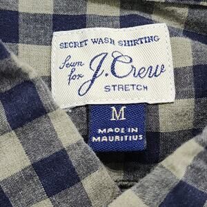 J.Crew Shirt Mens Size M Green Navy Gingham Check Plaid Long Sleeves Button Down Classic Stretch Secret Wash Shirting Sewn for J. Crew Office Career