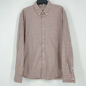 J.Crew Shirt Mens Sz XL Peach Black Plaid Slim Fit 2 Ply Button Down Long Sleeve