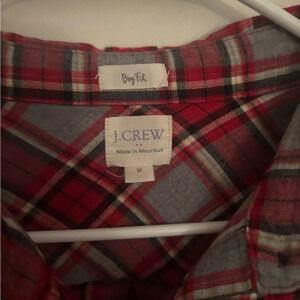 J.Crew Shirt womens Boy Fit Tartan Plaid Red Black Button Up Office Career F7289