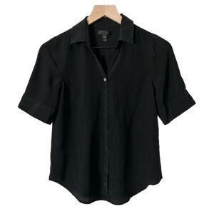 J.Crew Short Sleeve 100% Silk Button Down Blouse in Black Size PXS