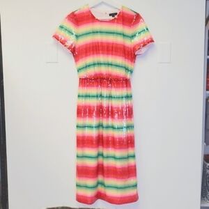 J.Crew Short-Sleeve Sequin Dress in Watermelon Stripe Size 2