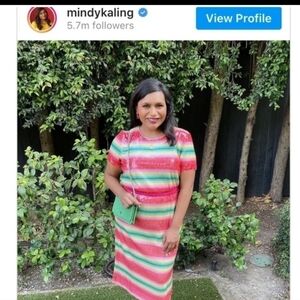 A classic short-sleeve midi dress with a little something extra: allover watermelon-stripe sequins.
