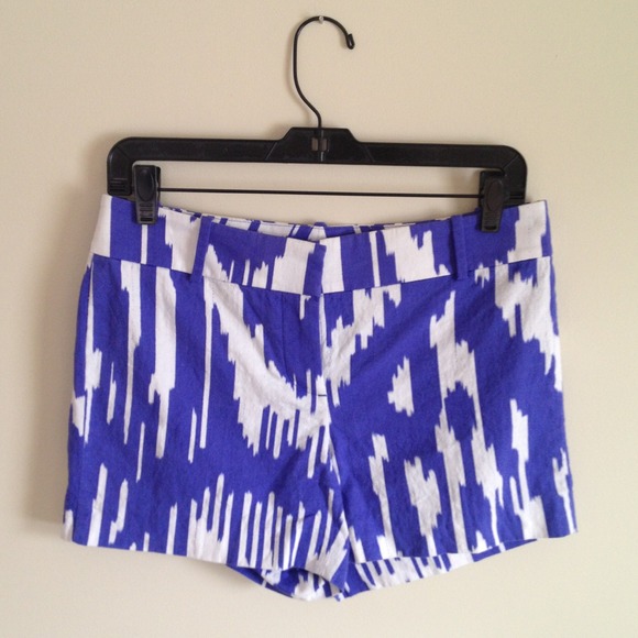 J.Crew Ikat print Shorts. So cool on trend printed shorts. I bought these for the print and never go to wear them, not much of a shorts kinda girl. Fits more like a 2, has great stretch for comfort. Perfect condition. Color is a bit more lilac in person. So great and lightweight for aping and summer!