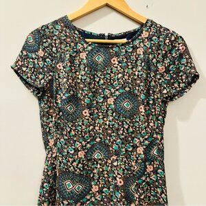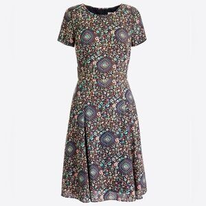 J.Crew Short-sleeve flutter Floral Patterned Dress Navy Pink Begonia Size 00