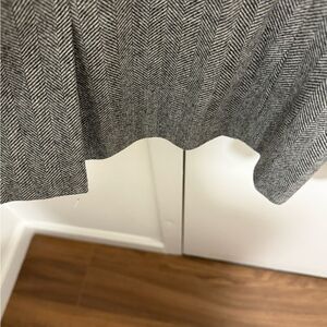 J.Crew shrunken fit wool blend single breasted herringbone blazer with gold tone buttons. It’s slimmer & shorter so it hits at the hip. Features chest pocket, notch lapel, single breasted, welt pockets with flaps, back vent, gold tone embossed buttons, pinstripe lining and 4 buttons on cuff.