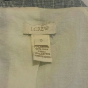 Their version of dress blues is rendered in a smart glen plaid with a full on feminine silhouette. Distinctive details include: Crested buttons and shaped seams for a polished flattering fit. Cotton and linen. Notch collar. Long sleeves. Functional buttons at cuffs. Fully lined. Hits at hip. Import. Dry clean.
