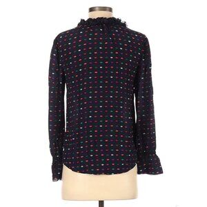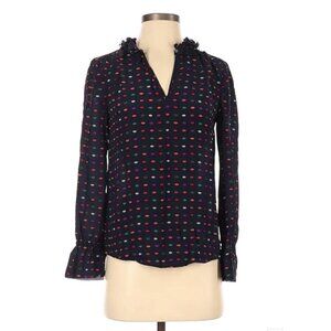 J.Crew Silk Career Blouse Blue Long Sleeve Colorful Ruffle V-neck Size 00 XS