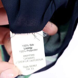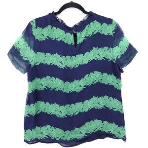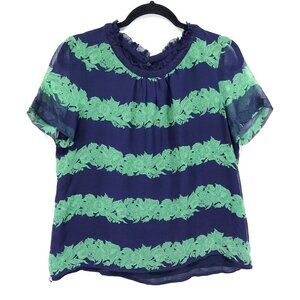 J.Crew Silk Ruffle Blouse Womens Size 12 Top Beanstalk Stripe Navy Green Retro