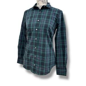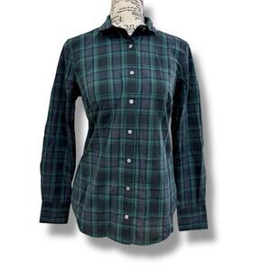 J.Crew Size 0 XS Green Plaid Club-Collar Perfect Button Shirt Midnight Emerald