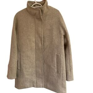This elegant J.Crew wool coat in size 12 offers timeless sophistication and warmth for the colder months. Crafted from a soft wool blend, it features a stand collar, hidden front closure, and side slit pockets for a clean, tailored look. The neutral light gray tone makes it easy to pair with any outfit — from casual jeans to office wear. Perfect for winter layering and versatile styling, this coat delivers both comfort and chic minimalism.
