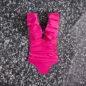 J.Crew Size 18 NWT Ruched Ruffle One-Piece Swimsuit Fuchsia Pink Beach Summer