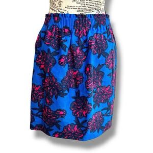 Add a colorful and feminine touch to your wardrobe with this J.Crew blue and pink floral mini skirt. Made from a lightweight blend of linen and cotton, this skirt is perfect for any occasion, whether you're traveling, going to a party or a casual day out. The skirt features a regular fit and a short length, giving you a stylish and comfortable look.