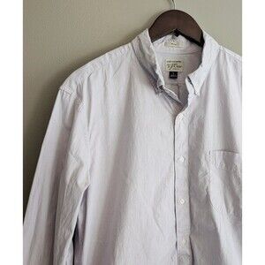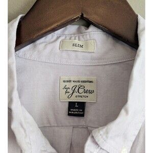 Secret wash shirting sewn for J Crew. Made of 98% cotton and 2% elastane. Light purple, lavender, long sleeve button down top. Excellent pre-owned condition. It is about 30" long and 21" armpit to armpit. Buy with confidence. Your satisfaction is my priority. Ships fast and comes from a smoke-free home.