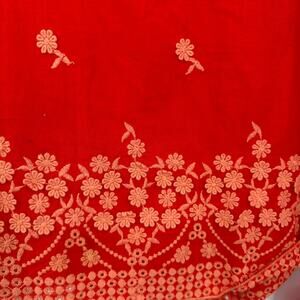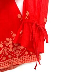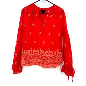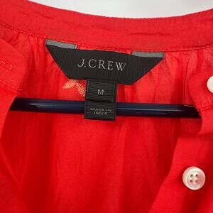 J.Crew Size Medium Long Sleeve Blouse Top Shirt Red Orange Embroidered Cotton