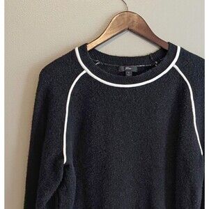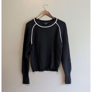 Tipped raglan-sleeve sweater from J Crew. Black with white accents. Women's size small. Made of 56% nylon, 30% wool, 10% alpaca and 4% elastane. Excellent pre-owned condition. It is about 19.5" long and 20" armpit to armpit. Buy with confidence. Your satisfaction is my priority. Ships fast and comes from a smoke-free home.