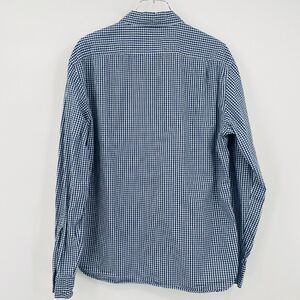 J. Crew Size XL Navy Blue White Gingham Plaid Slim Washed Button Down Shirt