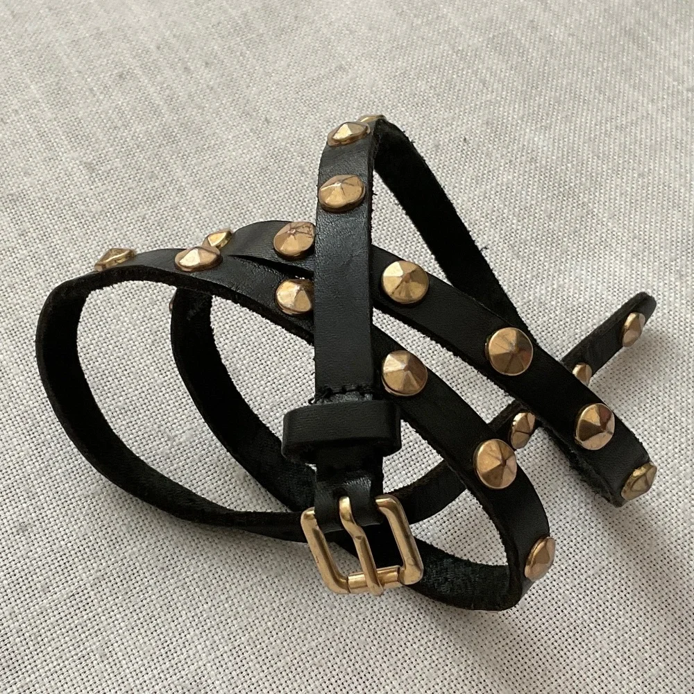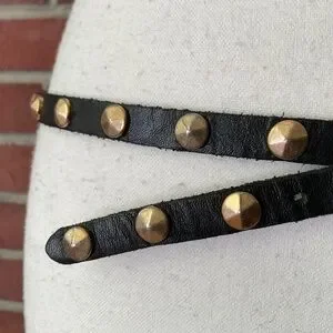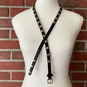 J.Crew Skinny Black Leather Studded Belt Size M