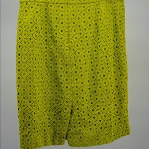 Lovely knee-length eyelet pencil J.Crew pencil skirt. Size 4. True to size. 100% cotton exterior, cotton and spandex lining. Sits at waist. Lime green color. Perfect for the summer!