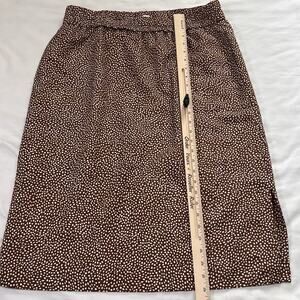 J.Crew Skirt Size L Brown Polka Dot Side Slit Elastic Waist Lined Teacher Office