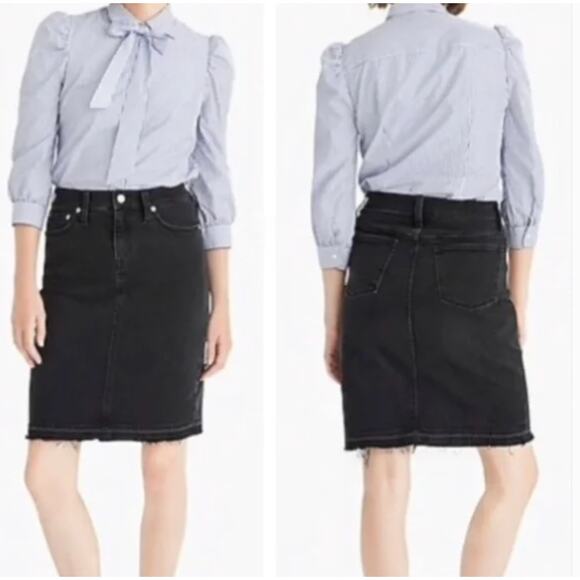 J.Crew Skirt Womens 26 Black Denim Raw Hem Pencil Mini Cotton