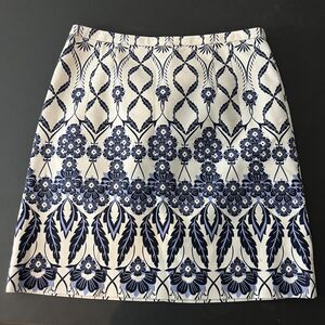 J.Crew Skirt Womens 6 Blue White Floral Jacquard Lined Hidden Zip A-Line Mini