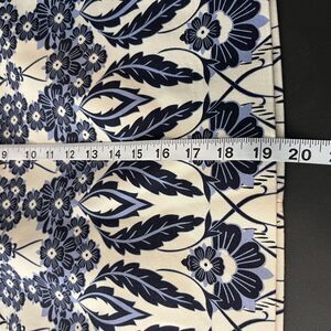Color/Pattern: Ivory/white base with navy blue floral and leaf botanical jacquard