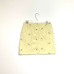 J.Crew Skirt Yellow Green Lizard Embroidery Back Pockets