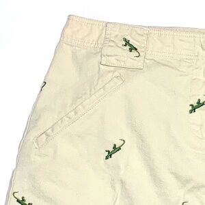 Light yellow skirt with zip and button front. Side Pockets. Green Lizards embroidered all over.