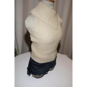 J.Crew Sleeveless Chunky Knit Sweater – Size Small – Foldover Collar Wool Blend