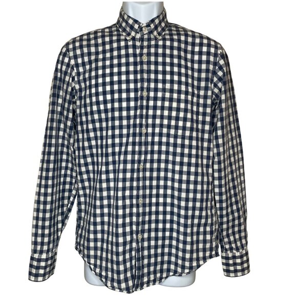 J.Crew Slim Fit Navy Blue Gingham 100% Cotton Lightweight Button Down Shirt Sm