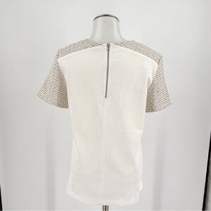 J.Crew Snow Ivory Cream w/ Gold Tweed Short Sleeve Top Size Extra Small Bag 2192