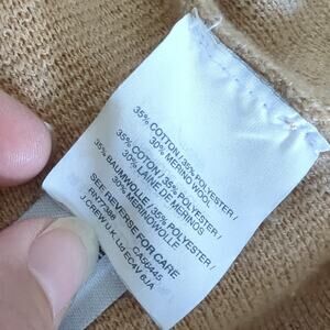 j.crew camel sweater Blazer size extra small tan cotton polyester Merino wool style number j0244 oversized relaxed fit Pockets long sleeves tan brown 27. flat across underarm 19. excellent condition.