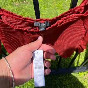 Gorgeous J.Crew square neck featherweight satin top. Never been worn with tags attached. Flattering square neckline. Super lightweight and Luxe material. Beautiful scarlet red color-perfect for fall!
