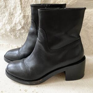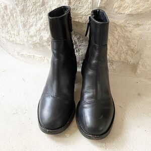 J.Crew Stacked Heel Ankle Boots Leather Black Side Zip Size 7.5 BJ869