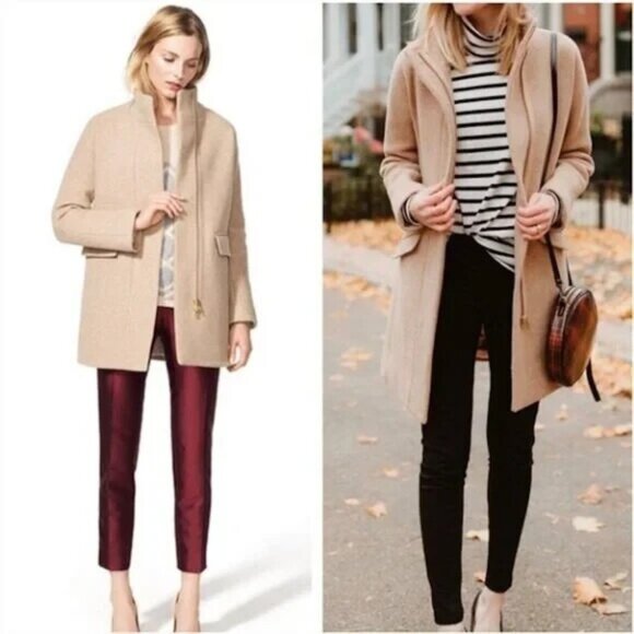 J.Crew Stadium Cloth Nello Gori Cocoon Coat Full Zip Lined Wool Blend Size 00
