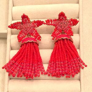 J.Crew | Starfish Beaded Tassel Earrings | 2.5” Length