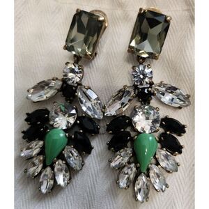 Elegant J.Crew clip-on earrings with eye-catching crystals and green accents. Perfectly designed to add a touch of sophistication to any ensemble.