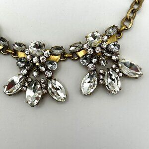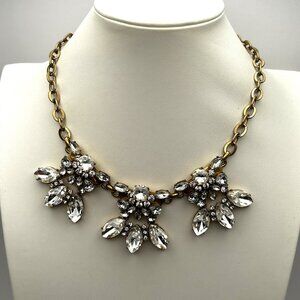 J.Crew Statement Necklace Clear Rhinestone Crystal Cluster Gold Tone Adjustable