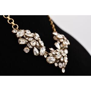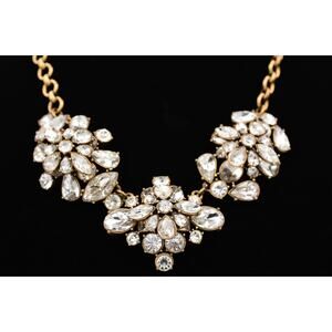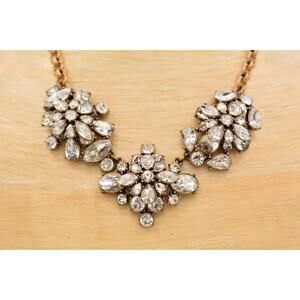 J.Crew Statement Necklace Rhinestone Crystal Antiqued Gold Chunky Signed BinAU