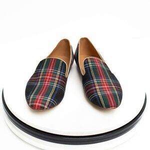 J.Crew Stewart Tartan Smoking Loafers Women's Size 8 Slip-On Flats Holiday Chic
